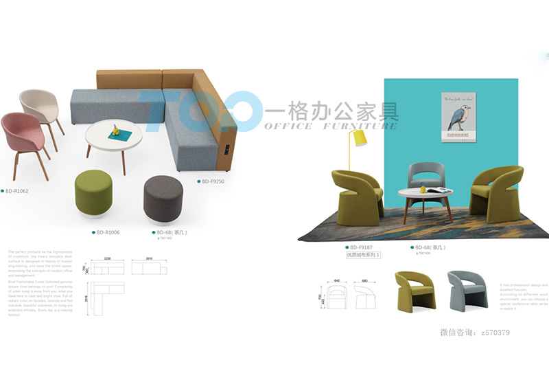 - 前臺接待區域,灰色的辦公室沙發,高冷氣息撲面而來,又不失時尚之感。該套辦公室沙發為布藝辦公沙發,布質柔軟絲滑,座面為高彈力...